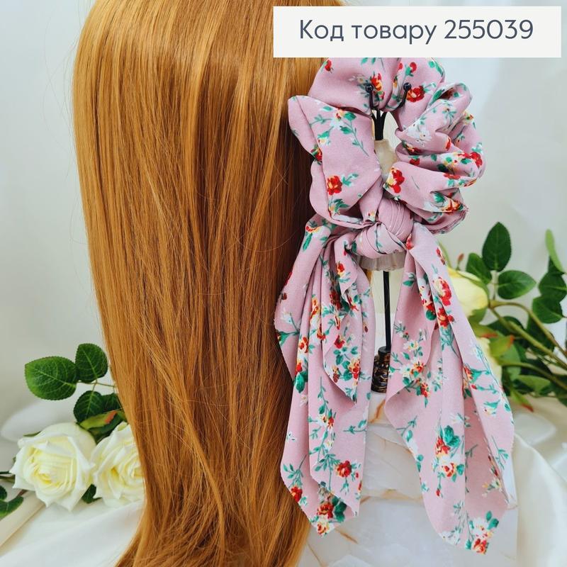 Резинка женская на голову твилли темно розовая цветы 9*27см, (ручная работа,украина)