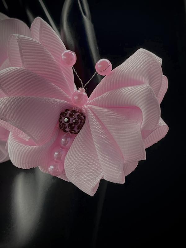 Дуже цікава і оригінальна ідея! Такий варіант прикраси для волосся у формі метелика з тулубом з намистин і крилами з репсової стрічки створить неймовірно елегантний і ніжний образ. Кріплення гумка. Діаметр 6 см. Ціна за один бант!