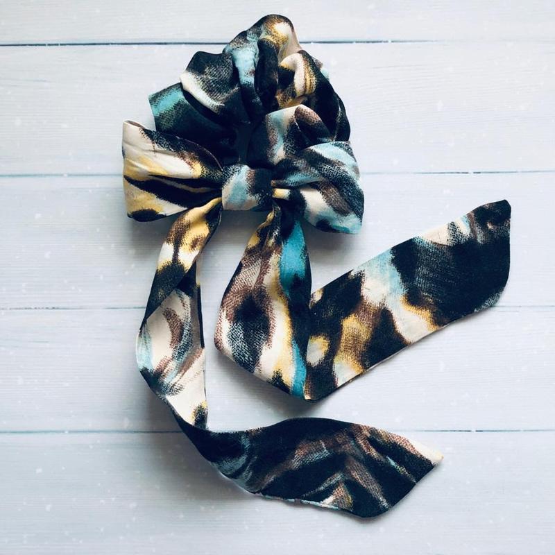 Новинка сезону! Яскравий, сучасний , модний аксесуар для волосся - резинка з ефектом завязаного банту. Резинка дуже мяка, відмінно тривмється на волоссі, підійде як для тонкого так і густого волосся, все буде залежати від кількості обертів резинки - 2 чи 3 оберти відповідно. Усі наші вироби українського виробництва, високої якості.