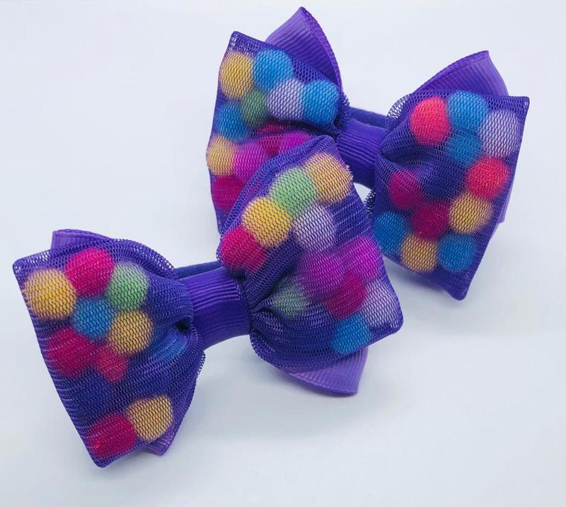 Новинка сезона 2020 ! Летние, яркие, нарядные бантики для волос на резиночках. Бантики наполнены цветными помпонами. Крепление - резиночка, нейлоновая, бесшовная, отлично держится, не скользит по волосам, хорошо держит хвостики и косички. Для тонких детских волос рекомендуем крепить резиночку в три оборота. - Основной цвет изделия - фиолетовый; - Декор - помпоны; - Крепление - резиночка; - Длинна бантика - 8,5 см.; - Материал - плотный фатин - сетка; - В наборе - 2 шт. Бантики рекомендуем для деток в возрасте от 3 лет и старше. Данный аксессуар отлично подойдет для детского сада, и школы. Бантики изготовлены из плотного материала, он отлично держит форму не мнётся. Такие бантики вы можете одевать под головной убор (кепка, шапка, капюшон) и бантики не потеряют свою форму. Бантики легко поддаются чистке, если это будет необходимо. Бантики могут стать прекрасным дополнением к праздничному или торжественному наряду девочки. Также бантики для волос могут стать отличным подарком для девочки на день рождения или любой другой праздник. Все бантики для волос - являются дизайнерскими украшениями, серийного типа украинского производства. Наша палитра заколочек и резиночек для волос с бантиками очень широкая: белый, экрю, молочный, персиковый, жёлтый светлый, жёлтый, оранжевый, мятный светлый, мятный, светло - розовый, розовый, ярко - розовый, пудровый, красный, бордовый, малиновый, голубой, синий, темно - синий, индиго, чернильный, светло - фиолетовый, фиолетовый, тёмно - фиолетовый. Цвета могут быть как чистыми, так и с разным принтом: цветы, герои мультиков, абстракция, горох, полоска, тиснение золотом, перфорация и многое другое. Мы также изготавливаем бантики с разным декором: стразами, бисером, кабошонами, пластиковым декором, помпонами, бусинами, кружевом и другими декоративными элементами.