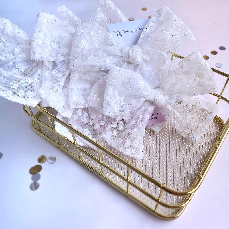 Бантики глітерні білі / бантики в школу / бантики святкові