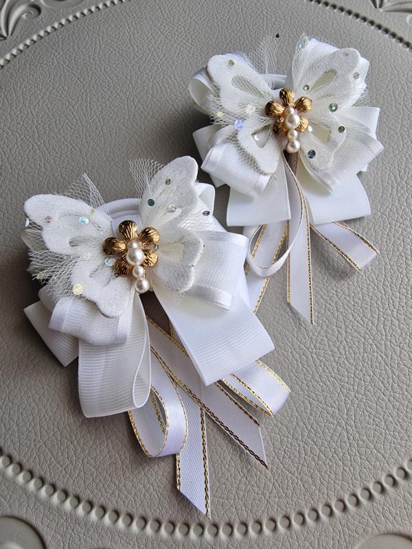 Бантики выполнены в сочетании репсовой, атласной и организовой ленты, фатина. Цена указана за 2 шт.
