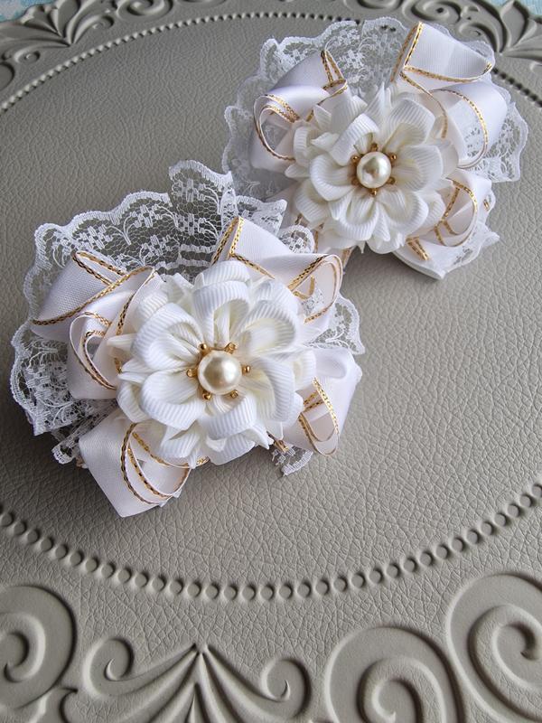 Бантики выполнены в сочетании репсовой и атласной ленты, кружева. Цена указана за пару (2шт).