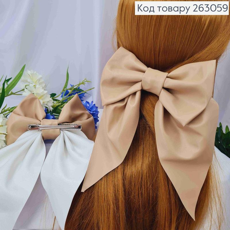 Бант из эко-кожи бежевый, на заколке стрела, размер 14*21см, украина, украшение для волос