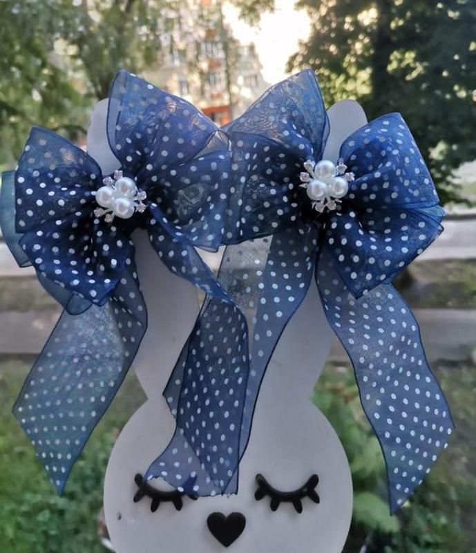 Резинка резинка бант синий горох с жемчужинами