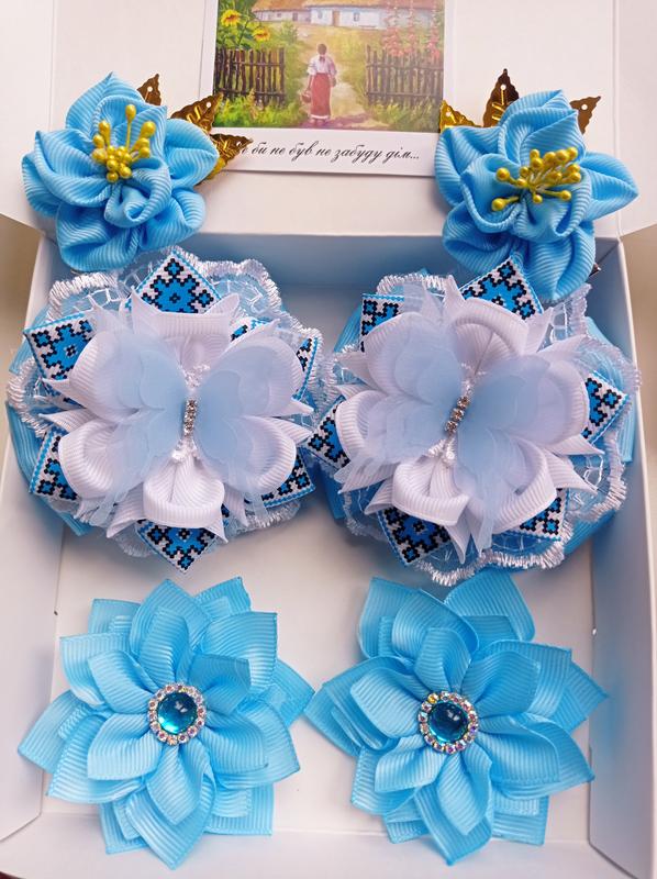 Набор бантиков пара резиночек и 2 пары заколочек. Набор 260 грн.