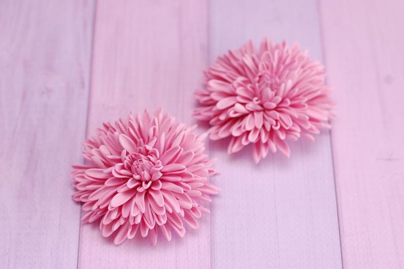 Хризантемы из фоамирана выполнены в пудровом цвете. Полностью ручная работа. Основа на выбор