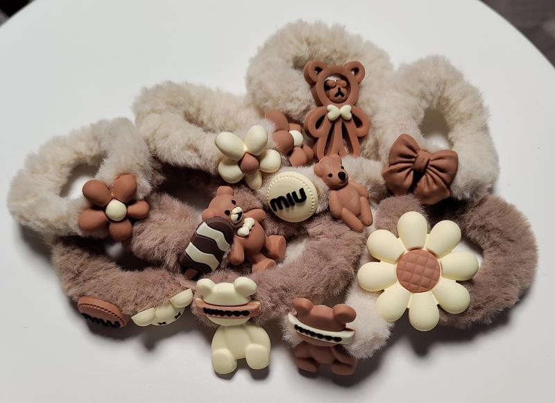 пушистые резинки для волос. резинка мягкая и эластичная, хорошо держится на волосах. Отличный выбор на подарок. Эта модель украшена пластиковыми украшениями в виде мишек, цветочков. Они будут идеальными для девочки,
