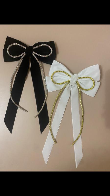 Бант для волос из бархатистой ленты и ленты с камушками в белом и черном цветах 🎀 ціна вказана за 1 бант