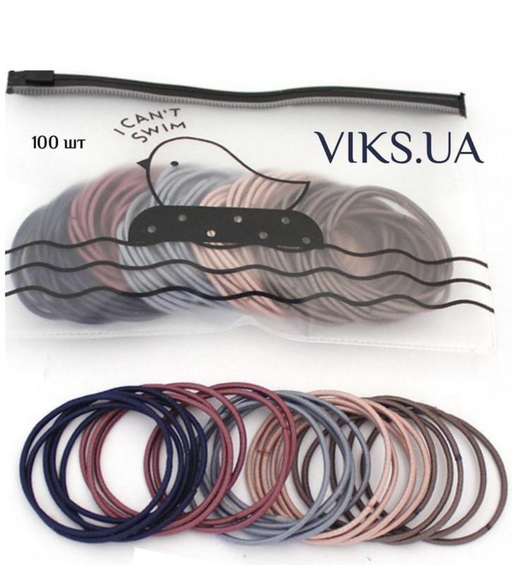 Набор тонких резинок для волос - 100 штук в стильной косметичке