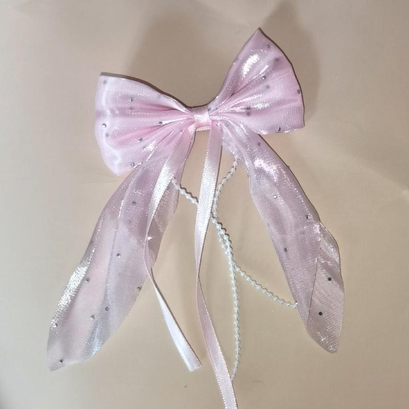 Розовый бантик для волос, украшенный стразами