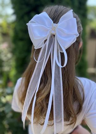Стильний бантик білого кольору з ніжного широту в поєднанні з шикарним сатином.