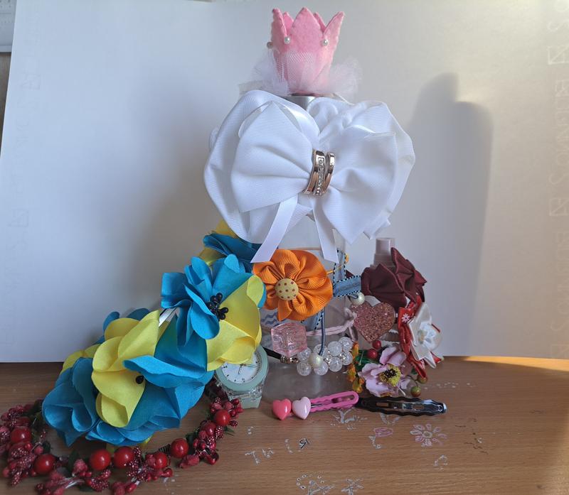 разноцветные резинки,бантики, заколки, часы зеленый детский. Можно продать поштучно или все вместе.