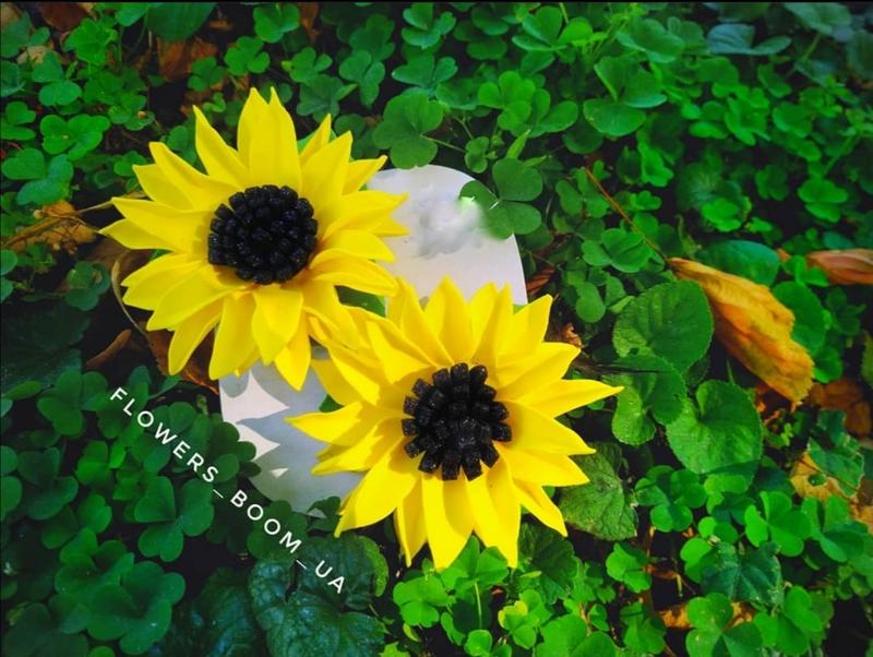 Яркие резиночки для девочек, которые обычно покупают к вышиванке. Диаметр одного подсолнуха примерно 9 см. Могут быть сделаны на заколочках. Материал - фоамиран. ЦЕНА УКАЗАНА ЗА ПАРУ.