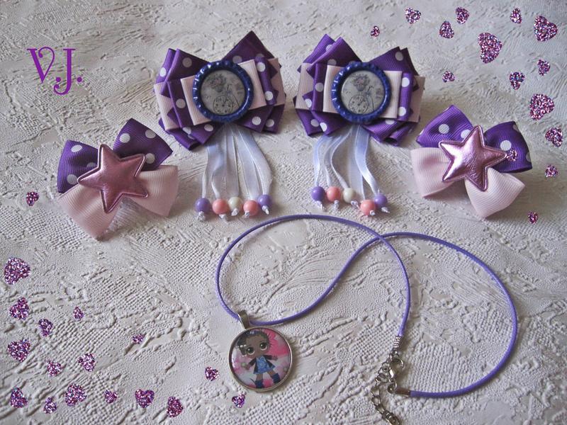 Аксессуары, украшения для волос. набор бантики на резинках, заколках, подвес с лол