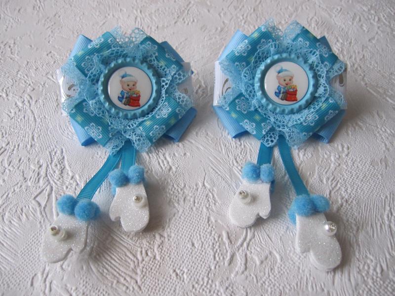 Аксессуары, украшения для волос. зимние бантики для девочек на резинках с рукавичками