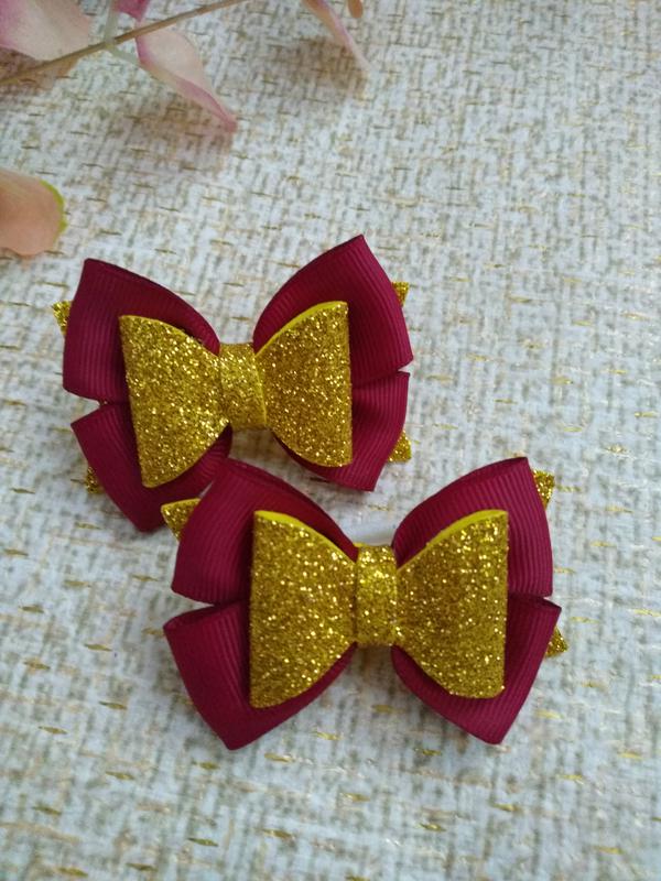 набор небольших бантиков из репсовой ленты и глитерного фоамирана, крепление резинка. ручная работа