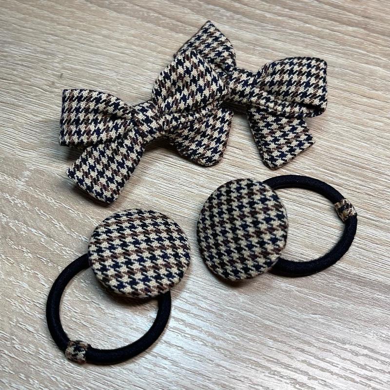 Набір бантики-заколочки+ґудзики-резиночки з текстилю. Бантики можна зробити на резиночках. Ціна набору: 100 грн