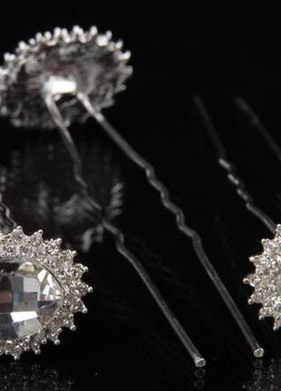 Шпильки для волос "цветы" со стразами серебристые (упаковка 20 шт)