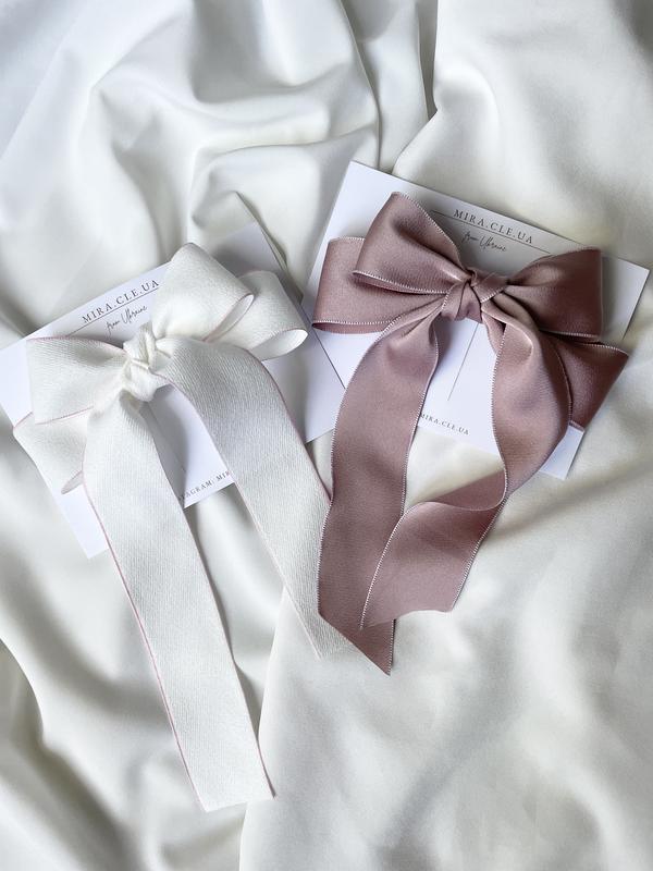 Ручная работа. Большой очень красивый бант, розовый материал сатир, белый текстиль. Крепление заколка автомат, или же резинка