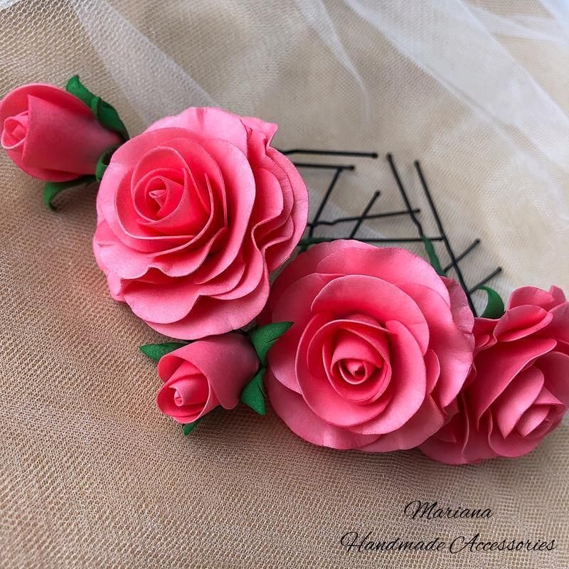 Троянди в зачіску, квіти виготовлені з фоамірану, матеріал дуже ніжний, легкий. Пелюстки тоненькі наче живі. Діаметр трояндочок 4-4,5 см. На замовлення колір квітів може бути інший (в залежності від наявного матеріалу) Ціна вказана за одну троянду (170 грн), бутончик 90 грн. характеристики: Тип: Шпилька Товар под заказ