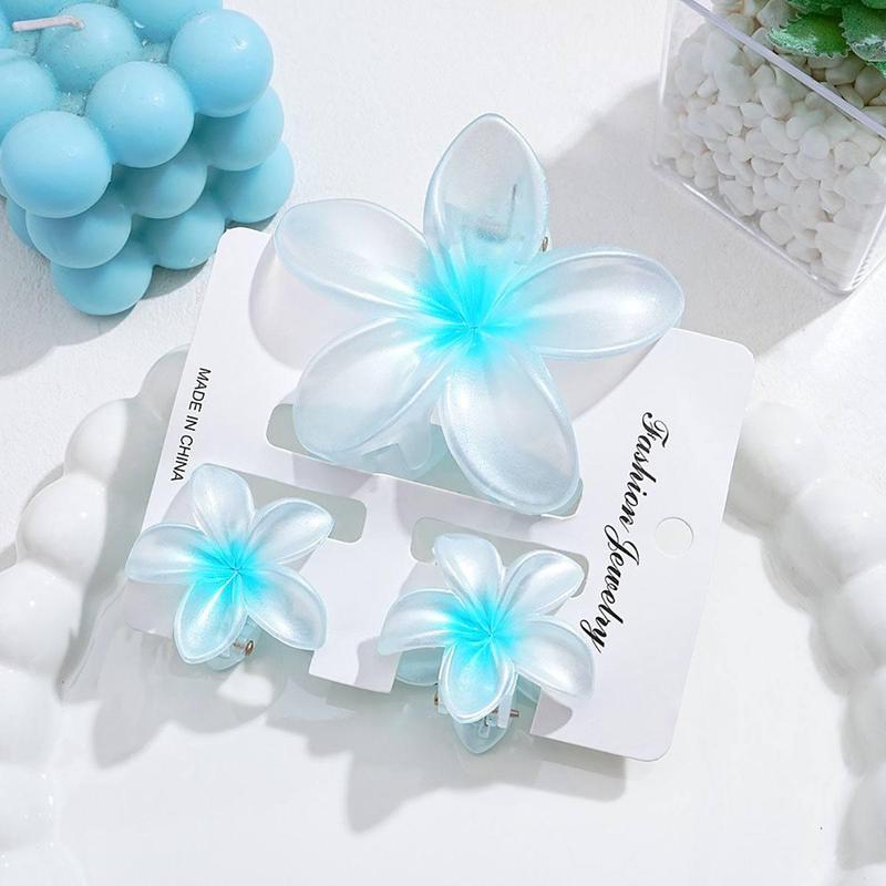 Набор трендовых заколок-зажимов "плюмерия" прозрачная с голубым, 3 шт