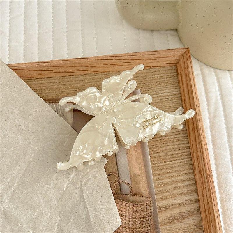 Роскошная заколка в форме бабочки. белый перламутр (10 см x 5 см)