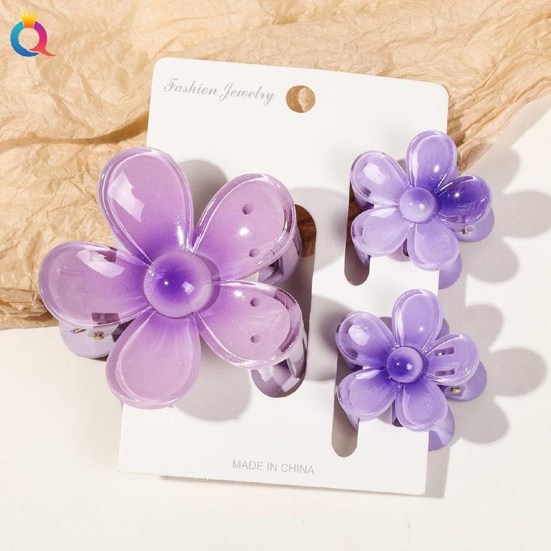 Набор трендовых заколок-зажимов в виде цветка фиолетовый, 3 шт