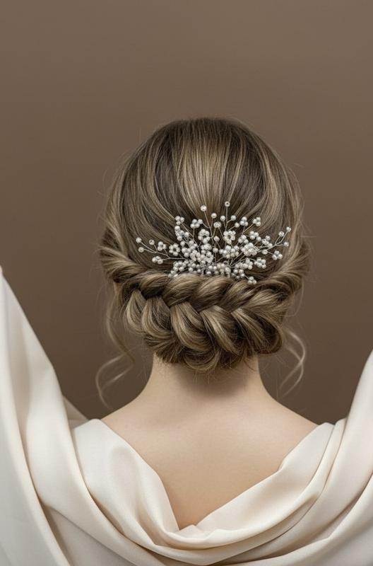 Легкий гребінець у волосся, виконаний з ювелірного дроту та прикрашений розсипом кристаликів. Такий гребінець прикрасить практично будь-яку зачіску та стане витонченим та ніжним акцентом як весільного, так і вечірнього образу. Гілочка гребінець ручної роботи виконана з бісеру в коричневому кольорі Гребінець для волосся Г-51 Ручна робота Розмір: довжина 14см ширина 10см