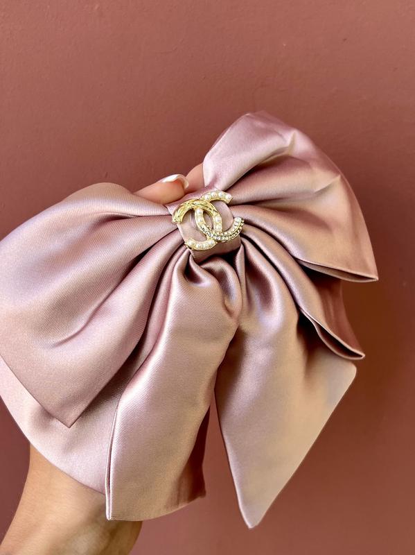 Заколка-бант для волос шанель в розовом цвете с логотипом