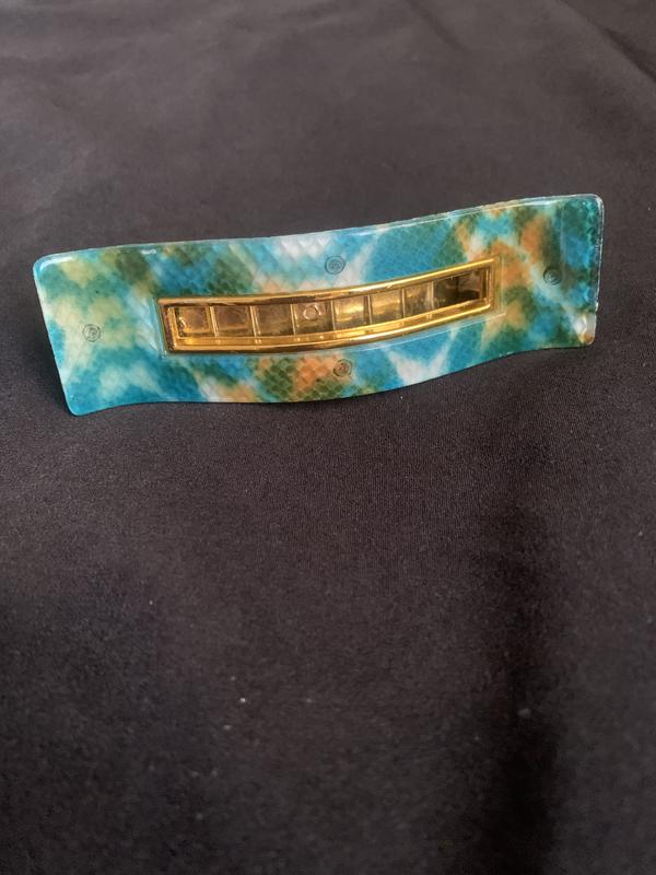 Заколка прищепка бирюзового цвета с белыми и бежевыми разводами Размер 10,5*3см Пластик Китай