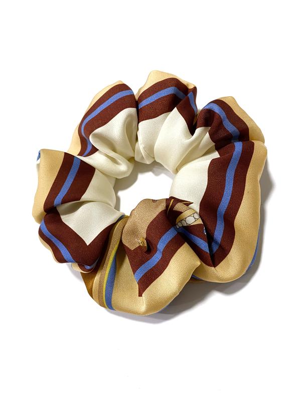 Скранч (резинка) для волосся в принт і блакитну смужку. Итальянская ткань, ручная работа, с фирменным логотипом украинского бренда mfstudio. Имеет приятный благородный легкий блеск.