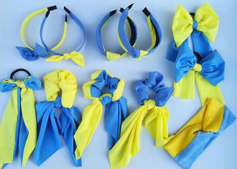 Цей День Незалежності буде особливий для українців, як ніколи раніше💙💛 Зараз особливо актуальні аксесуари в патріотичних кольорах, тому ми вирішили відшити таку колекцію: Обручі з вузликом 90 грн. Обруч солоха 80 грн. Резинки твіллі 65 грн. Пов'язки 90 грн. Пов'язки дитячі з бантом 85 грн. Обирайте! Дивіться інші мої оголошення!