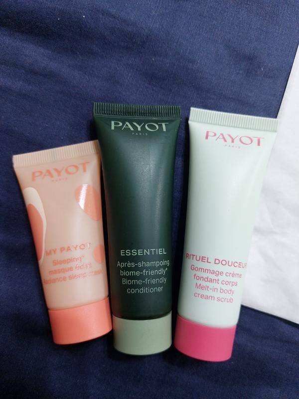 набор миниатюр маска кондиционер гомомаж 3в1 payot 1. Payot Essentiel Biome-Friendly Conditioner - Мягкий кондиционер с органическим шалфеем, миниатюра, 25 мл; 2. Payot Rituel Douceur - Гоммаж для тела с маслами сладкого миндаля, абрикоса, фисташки и ши, миниатюра, 25 мл; 3. Оригинальная ночная маска для лица для сияния кожи payot my payot sleeping masque eclat, 15 ml оригинал брокард