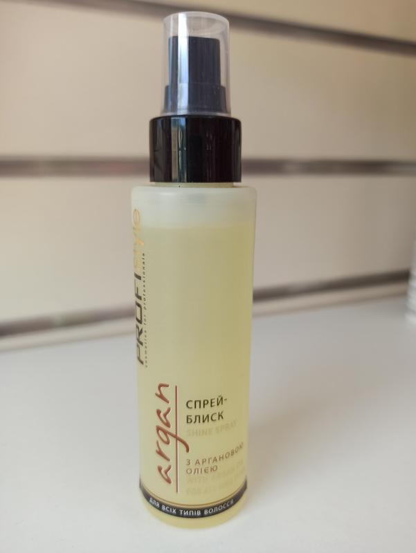 Спрей блеск для волос ProfiStyle Argan для поврежденных и сухих волос 100мл с маслом арганы предназначен для ухода за сухими и ломкими волосами. Результат - увлажнение - питание - мягкость - шелковистость - гладкость - блеск - жизненная сила Применение Распылить небольшое колличество средства на влажные волосы перед укладкой. Или на сухие волосы для мгновенного блеска. Не смывать! Покупайте всю продукцию по уходу за волосами ProfiStyle, от Украинского производителя "Вики", в интернет магазине Стайл Вумен по вкусным ценам! Мы работаем для Вас!!!
