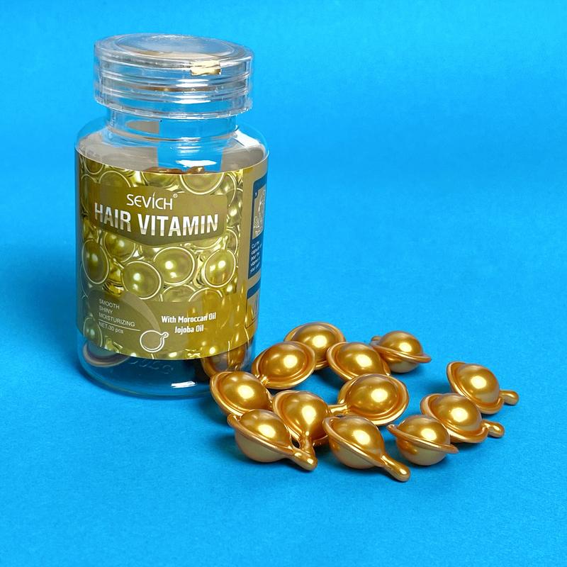 Кожна капсула Sevich містить потужний коктейль з олій, вітамінів та інших цінних компонентів, які відновлюють, зміцнюють структуру волосся і захищають від щоденного стресу, роблять його гладким, м'яким і блискучим. Золоті капсули для волосся від Sevich призначені для догляду за нормальним волоссям. Допомагають зберегти волосся гладким і блискучим (підходять для сухого, темного і нормального волосся). Індонезійська марокканська олія, олія жожоба, а також вітаміни A, C, E, В-5 роблять Ваше волосся доглянутим, зволоженим і подарують відчуття м'якості і блиску. У баночці 30 капсул. Спосіб застосування: вимити волосся і трохи підсушити рушником. Відрізати носик капсули. Половину олії розподілити на долонях. Нанести масло на вологе волосся для термозахисту та зволоження. Висушити волосся. Залишки олії нанести на сухе волосся.
