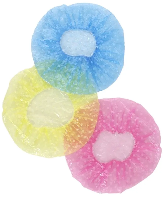 В наборе 3 шт Обеспечивает сухость волос и соответствует всем нормам гигиены Шапочка для душа, изготовлена из высококачественного полиэтилена. Шапочки удобны в использовании. Чаще всего их используют в косметологии, салонах красоты и парикмахерских. В комплекте : шапочки ( 3 шт) разных цветов ( голубой, розовый, желтый).