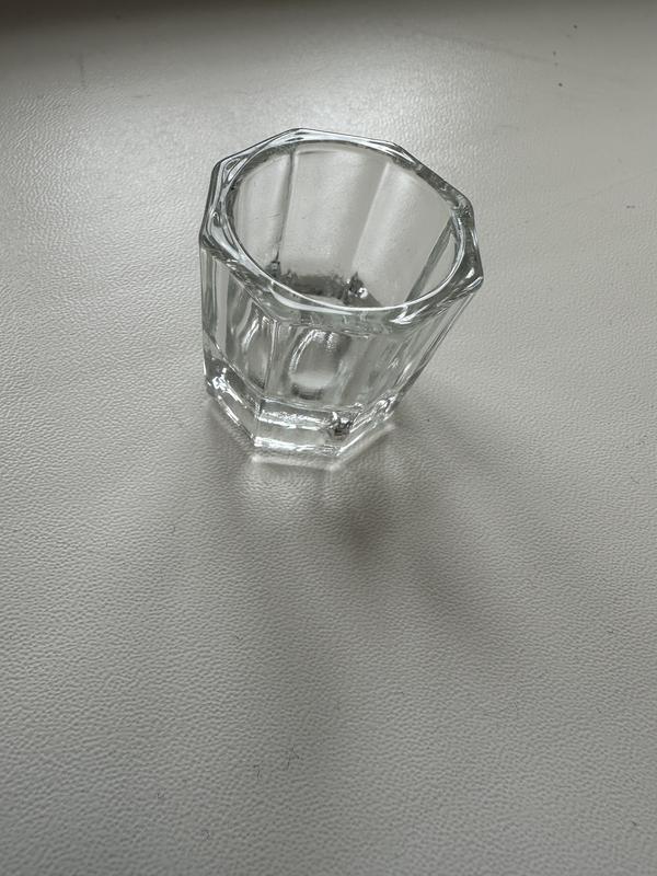 Скляний стакан для невеликої кількості мономера чи будь-який інших рідин, що застосовуються в роботі з моделюванням нігтів акрилом. Можна використовувати для перемішування краски для брів та вій.
