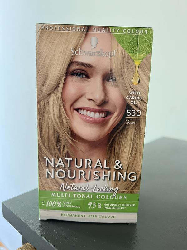 Стійка фарба для волосся Schwarzkopf Natural & Nourishing у відтінку 530 Light Blonde. Забезпечує до 100% зафарбовування сивини. Формула є веганською і містить до 93% інгредієнтів природного походження. Включає кондиціонер для зміцнення волосся з олією холодного віджиму, що надає волоссю м'якості. Призначена для створення природного багатотонового кольору.
