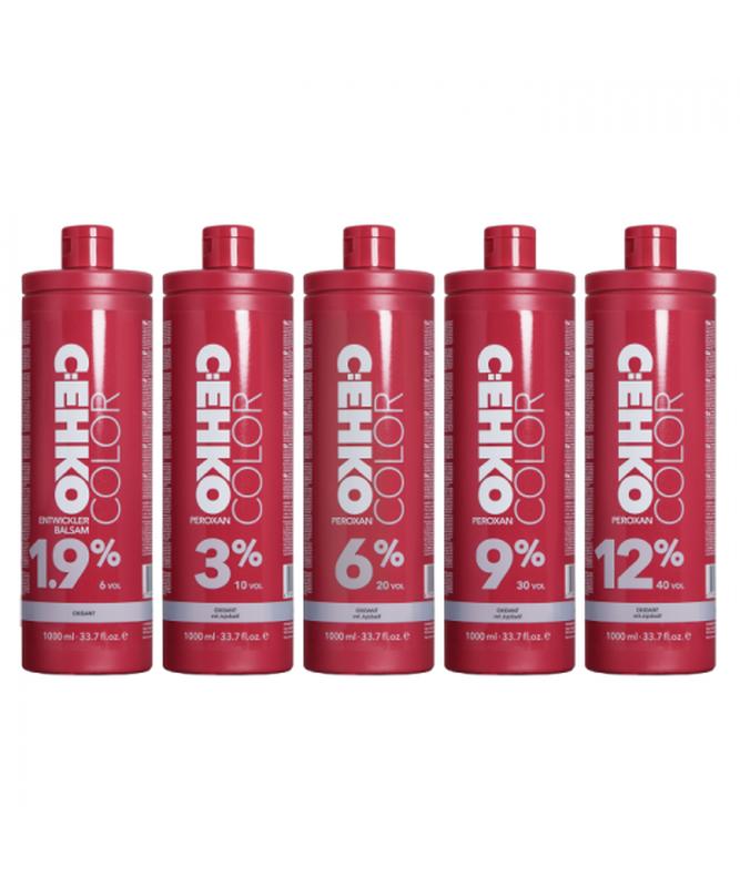 Окислительный крем-эмульсия C:ehko Peroxan создан для получения смеси идеальной консистенции для максимальной эффективности красителей и обесцвечивающих порошков. Препарат является одновременно активатором краски и ухаживающим средством. Входящее в состав масло жожоба неоднократно доказывало свою ценность. Оно словно обволакивает каждый волосок в невидимую пленку и защищает от химического воздействия, смягчает, снимает раздражение кожи головы, прекрасно ухаживает за локонами при покраске. В результате волосы остаются живыми, здоровыми и блестящими. Уникальная рецептура сочетает природные компоненты и инновации, что придает особые свойства в раскрытии интенсивности цвета. Окислитель бальзам Cehko Peroxan 1.9 подходит для тонировки, чтобы оживить цвет и придать ему приятные полутона. 3% проявитель следует выбирать, если нужно немного затемнить тон и при этом остаться в своем цветовом спектре. 6% позволит сделать яркую сочную окраску, освещение на один уровень, мелирование, окрашивание седины. 9% чаще используют для изменения оттенка до трех уровней. 12% подходит для интенсивного отбеливания до семи тонов, создания супер блонда и модных образов с яркими прядями. Препарат необходимо смешивать с красителем той же марки согласно инструкции производителя.