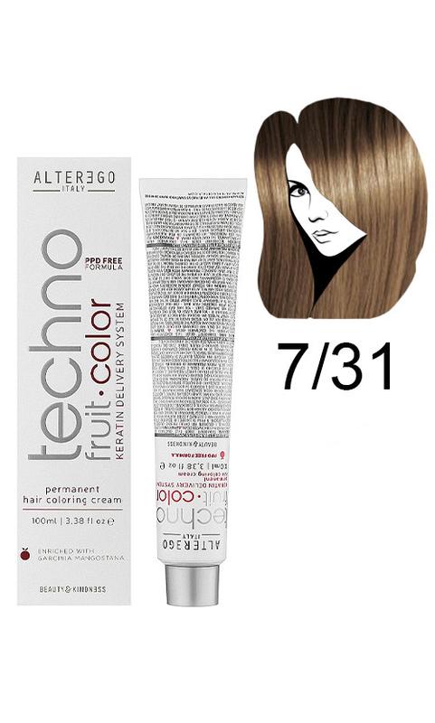 Alter ego techno fruit color permanent крем фарба технофрут колор 7/31золотисто попелястий...