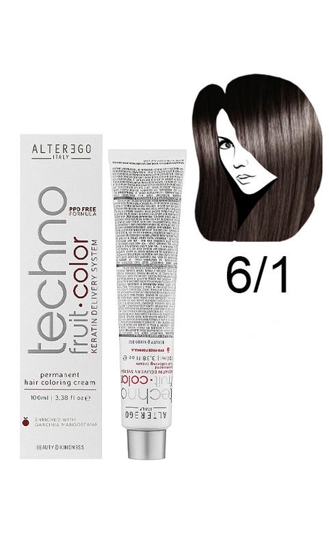 Alter ego techno fruit color permanent крем фарба технофрут колор 6/1 темно русявий насиче...