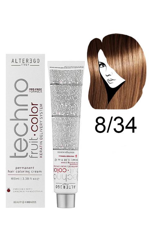 Alter ego techno fruit color permanent крем фарба технофрут колор 8/34 світло русявий золо...