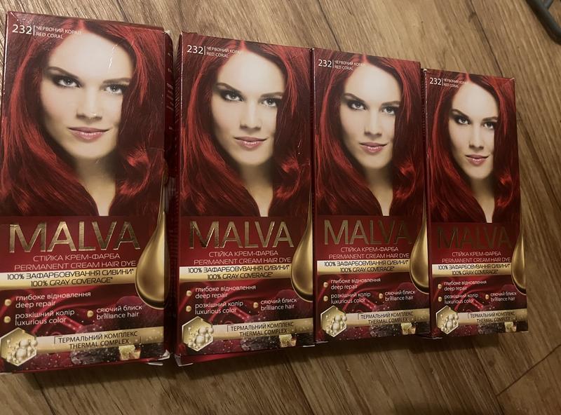 краска для волосся червоний корал у 232 кольорі чотири пачки 49 грн одна пачка краска дуже хороша, і бере навіть чорний колір