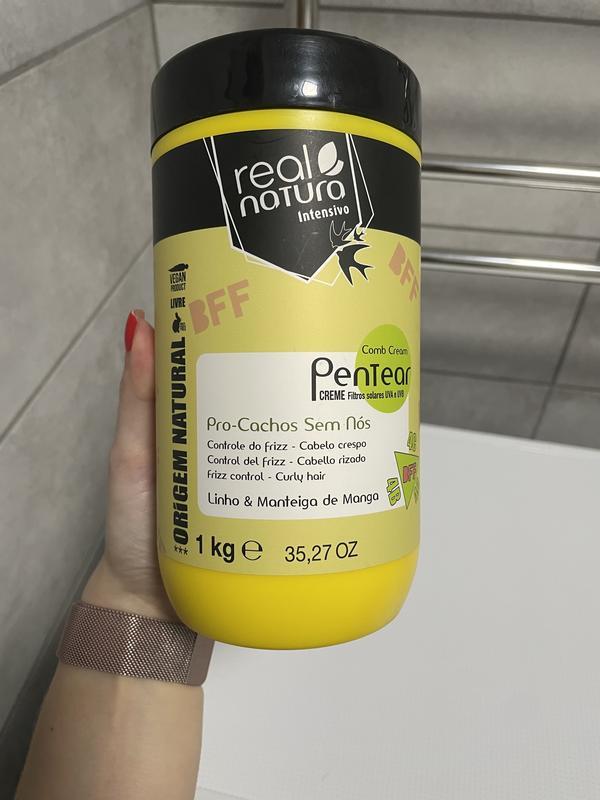 Крем для зволоження і розплутування волосся CREME DE PENTEAR BFF PRO-CACHOS SEM NÓS 1000 мл Забезпечує зволоження, розплутує кучеряве волосся, полегшуючи розчісування. Сприяє довшому збереженню форми завитка, додає пружності. Активні компоненти: Льон - багатий клітковиною, вітамінами і органічними кислотами, які підтримують здоров'я, доглянутість волосся. Екстракт манго - зволожує та пом'якшує локони, допомагає впоратися з ламкістю і посіченими кінчиками. Спосіб застосування: Нанесіть на чисте волосся (вологе або сухе). Рівномірно розподіліть по довжині і укладіть за бажанням. Змивати не потрібно. Склад: aqua***, glycerin***, cetrimonium chloride, cetearyl alcohol***, caprylic/capric triglyceride***, argania spinosa kernel oil*, aloe barbadensis leaf water*, ceramide 3***, isoamyl laurate***, citric acid***, parfum, imidazolidinyl urea, alpha-isomethyl-ionone, linalool. *origem biológica/***origem natural. Термін придатності: 36 місяців. Дата виготовлення вказана на упаковці. Дуже класний засіб для зволоження волосся, замовила собі 1000 мл але розумію що мені його на 10 років вистачить, тому розділю по баночках мініатюри 50 мл , ціна 90 грн за 50 мл