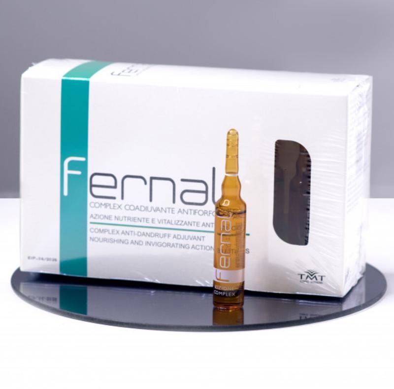 Комплекс Fernal выступает в роли адъюvанта при лечении перхоти и имеет широкий спектр действия: питательное действие аминокислот кератина; смягчающее и успокаивающее действие растительных экстрактов шалфея, календулы и ромашки; восстанавливающее действие для кожи головы и волосяных луковиц благодаря содержанию растительных экстрактов лука репчатой, мирта обыкновенного и мириса душистой; активное воздействие камфоры и ментола при повышенном трофизме тканей; антибактериальное действие чеснока и зверобоя. Рекомендации по применению: для эффективности лечения применяют 2 флакона в течение первой недели, в течение последующих недель – 1 флакон. Шоковая терапия: применяйте 2 флакона в неделю, дополнительно чередуя с 1 флаконом ESSEON complex. Способ применения: Вымыть волосы Нанести содержимое флакона на кожу головы Высушить волосы Средство не смывать Перед использованием хорошо встряхните флакон. Объем - 10 мл