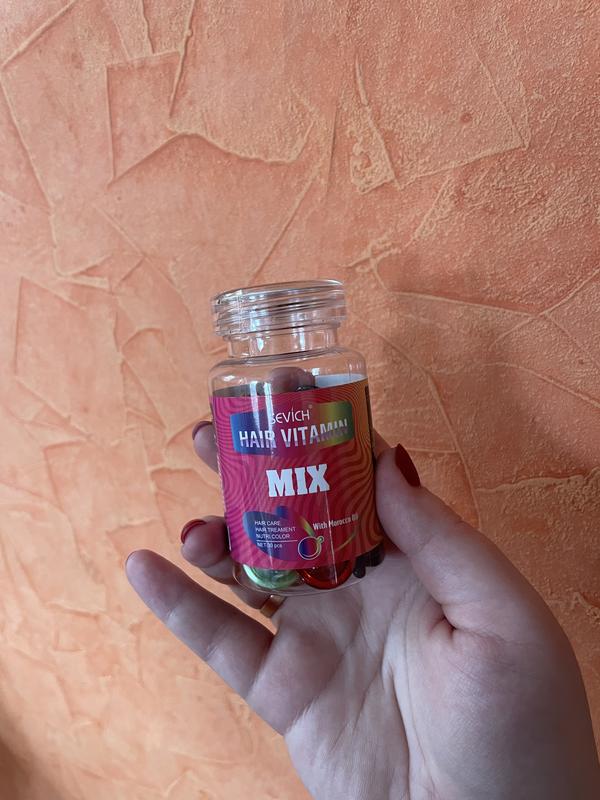 Инновационный комплекс витаминных капсул от Sevich mix 30 штук 🌈 Включает капсулы 7 цветов по 4 штуки каждого цвета и 2 дополнительные капсулы случайного цвета. А именно, благодаря применению красных капсул ваши поврежденные волосы приобретут здоровое сияние, приобретут витамины А, С, Е, В5, смягчится благодаря маслу жожоба, станут сверкать, как зеркало, благодаря марокканскому маслу. Каспулы этого цвета защитят волосы от вредных факторов окружающей среды и оздоровят их. Экстравагантные фиолетовые капсулы предназначены для применения, если у вас окрашены волосы. В результате они максимально сохраняют цвет, разглаживают волосы и придают здоровый блеск, так как имеют в составе марокканское масло, подсолнечное масло, масло сои, аргановое масло, витамин А и С. Зеленые сочные капсулы лечат сухие и посеченные окрашенные волосы. При применении капсул волосы увлажняются, кончики выглядят ухоженными. Именно волосы становятся более крепкими, исчезают ломкость, тусклость и сухость. А все благодаря тому, что в составе капсул есть масло семян камелии, марокканское масло, витамин В5. Задорные оранжевый капсулы отвечают за улучшение состояния ломких волос. Питательные вещества капсулы глубоко проникают в структуру волос, увлажняют, предотвращают возникновение секущихся кончиков. В этом помогает состав, а именно: экстракт меда, экстракт женьшеня, витамин Е. Оптимистические желтые капсулы заботятся о питании и блеске. Из-за того, что они разработаны на основе натуральных компонентов, капсулы глубоко питают и увлажняют волосы по всей длине. Капсулы-ликари насыщают полезными витаминами, содержат целебный масляный комплекс, который предотвращает сухость и истощение, делает волосы послушными, гладкими и блестящими. Содержат алоэ вера, масло сои, марокканское масло. Золотые капсулы из ломких и пористых волос делают великолепно гладкие блестящие, словно в модели. А все благодаря тому, что ловко питают и увлажняют сухие волосы. Капсулы с особой заботой помогают удерживать такую жадую влагу, образуют защитный барьер на поверхности волос, предотвращают запутывание. Состав: масло жожоба, алоэ вера, масло сои, марокканское масло, аргановое масло. (И две капсулы в баночке рандомной)
