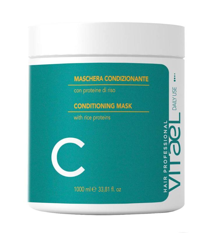Маска для ежедневного использования Vitael Daily Use Conditioning Mask - это идеальное кондиционирующее средство для увлажнения, распутывания и придания мягкости всем типам волос, не утяжеляя их. Препарат оказывает эффективное подкисливающее действие, восстанавливает естественный баланс волосяного волокна, возвращая блеск и жизненную силу, продлевая продолжительность жизни цвета. Протеины риса, входящие в состав средства, обладают выдающимися косметическими свойствами, они насыщают влагой и минералами, смягчают, защищают и выравнивают структуру кожи и волос. Значительно улучшают состояние волосяного полотна, делают пряди послушными, мягкими и невероятно блестящими. Компонент обеспечивает увлажняющее, смягчающее и успокаивающее действие на кожный покров, а также восстанавливает структуру поврежденных волосков, активизирует кровообращение во фолликулах. Достоинства и особенности Vitael Daily Use Conditioning Mask: Насыщает полезными микроэлементами; Гарантирует необходимый уровень увлажнения; Помогает восстановить поврежденные участки волоска; Укрепляет волосяное полотно по всей длине; Защищает от обламывания и препятствует образованию секущихся кончиков; Увлажняет и питает кожный покров; Дарит локонам эластичность и блеск. Маска для ежедневного использования Vitael Daily Use Conditioning Mask - это идеальное кондиционирующее средство для увлажнения, распутывания и придания мягкости всем типам волос, не утяжеляя их. Препарат оказывает эффективное подкисливающее действие, восстанавливает естественный баланс волосяного волокна, возвращая блеск и жизненную силу, продлевая продолжительность жизни цвета. Протеины риса, входящие в состав средства, обладают выдающимися косметическими свойствами, они насыщают влагой и минералами, смягчают, защищают и выравнивают структуру кожи и волос. Значительно улучшают состояние волосяного полотна, делают пряди послушными, мягкими и невероятно блестящими. Компонент обеспечивает увлажняющее, смягчающее и успокаивающее действие на кожный покров, а также восстанавливает структуру поврежденных волосков, активизирует кровообращение во фолликулах. Достоинства и особенности Vitael Daily Use Conditioning Mask: 1 насыщает полезными микроэлементами; 2 Гарантирует необходимый уровень увлажнения; 3 Помогает восстановить поврежденные участки волоска; 4 Укрепляет волосяное полотно по всей длине; 5 Защищает от обламывания и препятствует образованию секущихся кончиков; 6 Увлажняет и питает кожный покров; 7 Дарит локонам эластичность и блеск. Способ применения: Распределить на очищенный шампунем и подсушенные полотенцем волосы. Хорошо расчесать и оставить действовать на несколько минут. Тщательно смыть и высушить