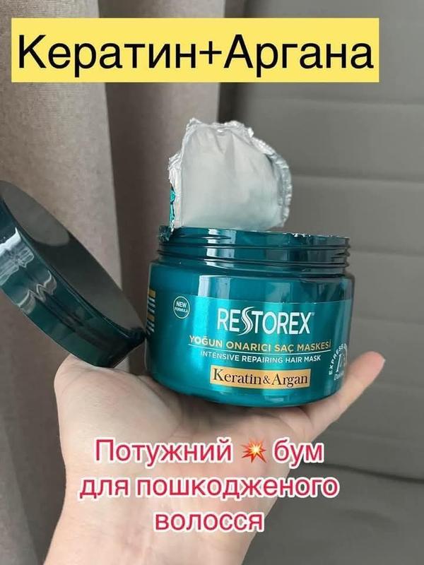 🪄 Восстанавливающая маска для волос Restorex - мгновенное преображение всего за 1 минуту! 😉Хочешь, чтобы твои волосы выглядели идеально независимо от их типа и состояния? Лови секрет красоты - маска Restorex с кератином и аргановым маслом! ✨ Что делает маску Restorex уникальной❓ 🔹 Кератин - мгновенно восстанавливает волосы изнутри, делает их сильными и упругими. 🔹 Аргановое масло – глубоко питает и увлажняет, придает шелковистость и естественный блеск. 🔥 Преимущества:👇👇👇 ✅ Интенсивное увлажнение и питание. ✅ Легкое расчесывание без ломкости. ✅ Защита от пушистости и антифриз-эффект. ✅ Мгновенный результат - всего за 1 минуту! 💎 Подходит для всех типов волос: 💠Нормальное 💠Сухе 💠Наклонное к жирности 💠Зафарбоване 💠После химических процедур или выпрямления ❤️Подари своим волосам заботу, которой они заслуживают! Пиши в дырект или оставляйте комментария! Объем 300мл Брошь Турция