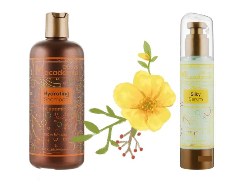 Шампунь увлажняющий, сыроватка флюид шелк Kleral с маслом макадамии для сухих, поврежденных, окрашенных волос 500мл +100мл Италия Увлажняющий шампунь 500мл - питание поврежденных волос от итальянского бренда Kleral System olio di Macadamia Hidrating Shampoo на основе протеинов и витаминного комплекса создан для ослабленных и сухих волос. Сыворотка шелк 100мл Масло макадамии, эфирные масла, вытяжки растений питают и восстанавливают волосы от корней до самых кончиков. Свойства - ## Увлажнение - ## Питание - ## Восстановление - ## Успокаивает кожу головы - ## Укрепление волос - ## Сила - ## Блеск - ## Шелк Результат - бережно ухаживает - восстанавливает структуру - увлажняет - придает здоровый блеск сухим волосам Способ применения - Нанесите шампунь на влажные волосы, вспеньте - ## Через несколько минут смойте теплой водой - ## На подсушенные волосы нанесите флюид не смывайте Для секущихся кончиков рекомендуется наносить флюид на сухие волосы каждый день! Регулярное использование серии Kleral System избавит Вас от проблем сухих волос! Результат: восстанавливает и питает, придает блеск, мягкость, эластичность волосам